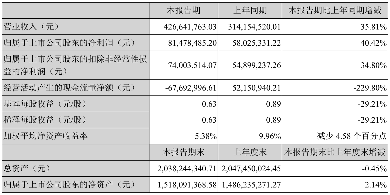 同兴环保(003027)近日发布2021年半年度报告,报告期内营业收入426,641,763.03元,同比增加35.81%;净利81,478,485.20元,同比净利增加40.42%。