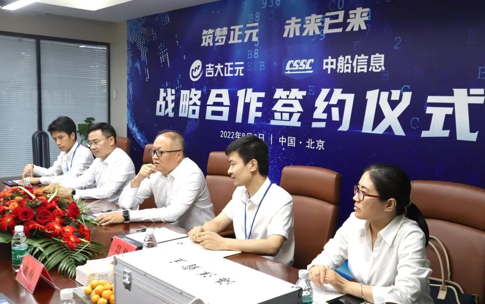 2022年8月2日下午,长春吉大正元信息技术股份有限公司(以下简称:吉大正元股票代码:003029)与北京中船信息科技有限公司(以下简称:中船信息)在北京签署战略合作协议。