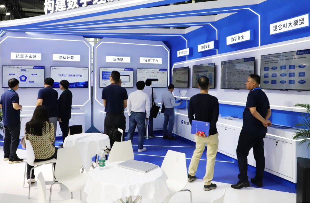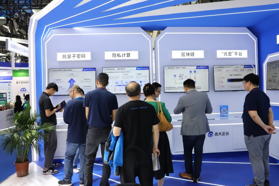 在创新发展成果展区,以“抗量子密码、隐私计算、区块链、元密平台”为核心,集中展示吉大正元在数字经济安全能力融合技术创新实践成果,抗量子密码芯片、抗量子PKI、安全区块链平台、隐私计算平台等全新密码、安全前沿技术创新及应用。