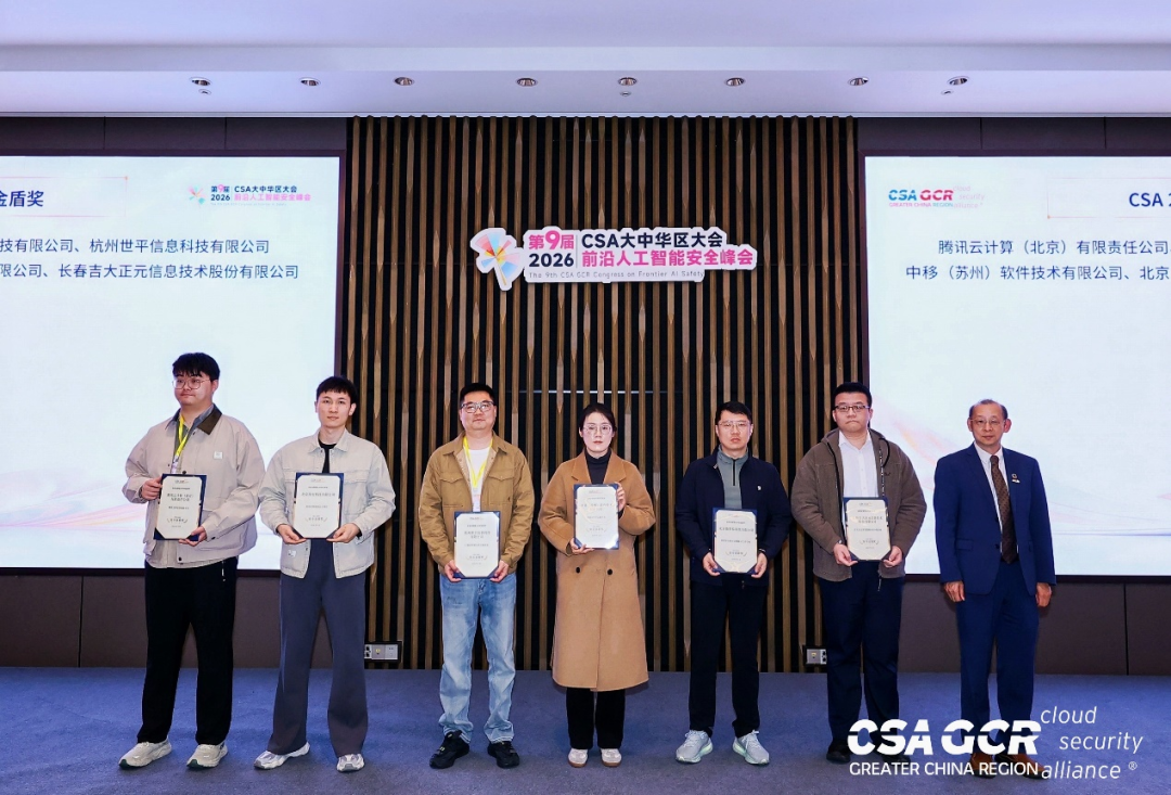 在颁奖环节,CSA大中华区对本年度在人工智能与网络安全领域做出杰出贡献与创新的企业与个人进行了隆重表彰。CSA安全金盾奖作为联盟最具含金量的奖项之一,旨在表彰能够解决关键安全问题、具备核心竞争力的安全产品或安全服务,要求参评产品或服务在相关领域有较强市场份额和影响力,具备创新性并获得业界的广泛认可。本届获奖产品聚焦业务风控、数据分类分级、应用数据安全等方向,以扎实的技术积淀和稳定的实战表现,成为守护数字资产安全的中坚力量。