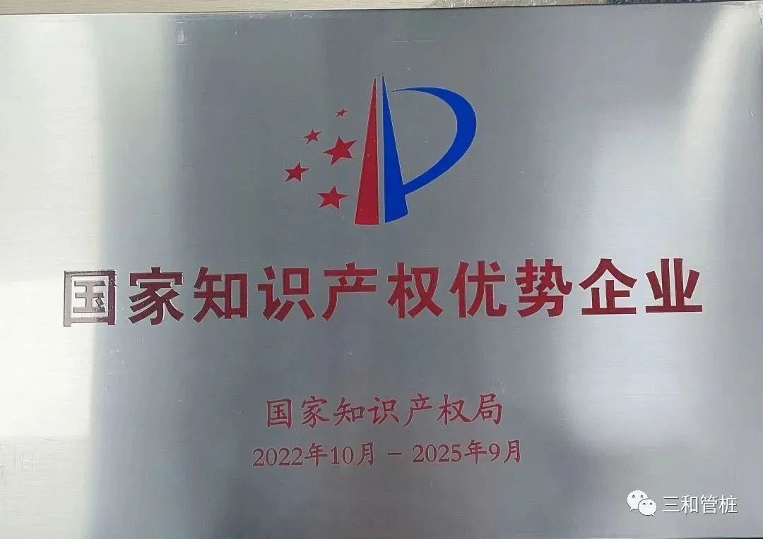 三和管桩也将秉持党的理念,大力推动企业科学技术的创新发展,不断研发新技术、新产品,努力打造技术三和、绿色三和的品牌形象,推动管桩产品的高质量发展;充分发挥“国家知识产权优势企业”的引领作用,在实践中落实知识产权管理机制,不断完善不足之处,为我国知识产权保护与建设贡献一份力量。
