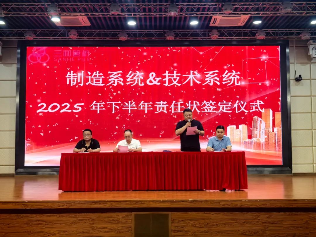 会议最后各基地生产负责人和技术负责人依次上台签订2025年下半年生产与技术管理目标与要求。