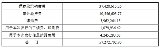 鑫铂股份上市发行费用为5727.27万元,其中保荐机构华林证券股份有限公司获得保荐及承销费用3742.86万元。