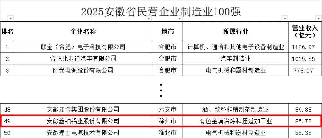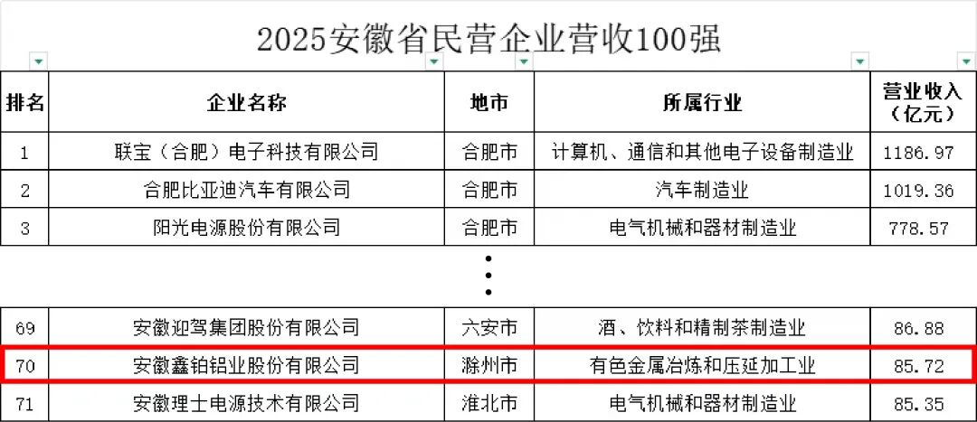 10月16日上午,2025安徽省民营企业百强榜单在合肥正式发布。鑫铂股份凭借稳健的综合实力,成功入选安徽省民营企业“营收百强”与“制造业百强”两大榜单。