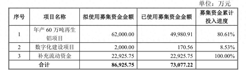 至于“年产60万吨再生铝项目”,鑫铂股份透露,该项目拟使用募集资金6.2亿元,截至2026年2月24日,该项目已使用募集资金约5亿元。该项目拟分三期建设,目前一、二期项目已建成投产。在外部市场竞争压力持续加剧的情况下,公司持续推进降本增效,若继续按照原计划投入设备和人力等资源,不仅会造成资源浪费,而且难以实现预期经济效益,不符合项目成本效益原则,因此继续推进该募投项目已不符合公司当前发展需求。