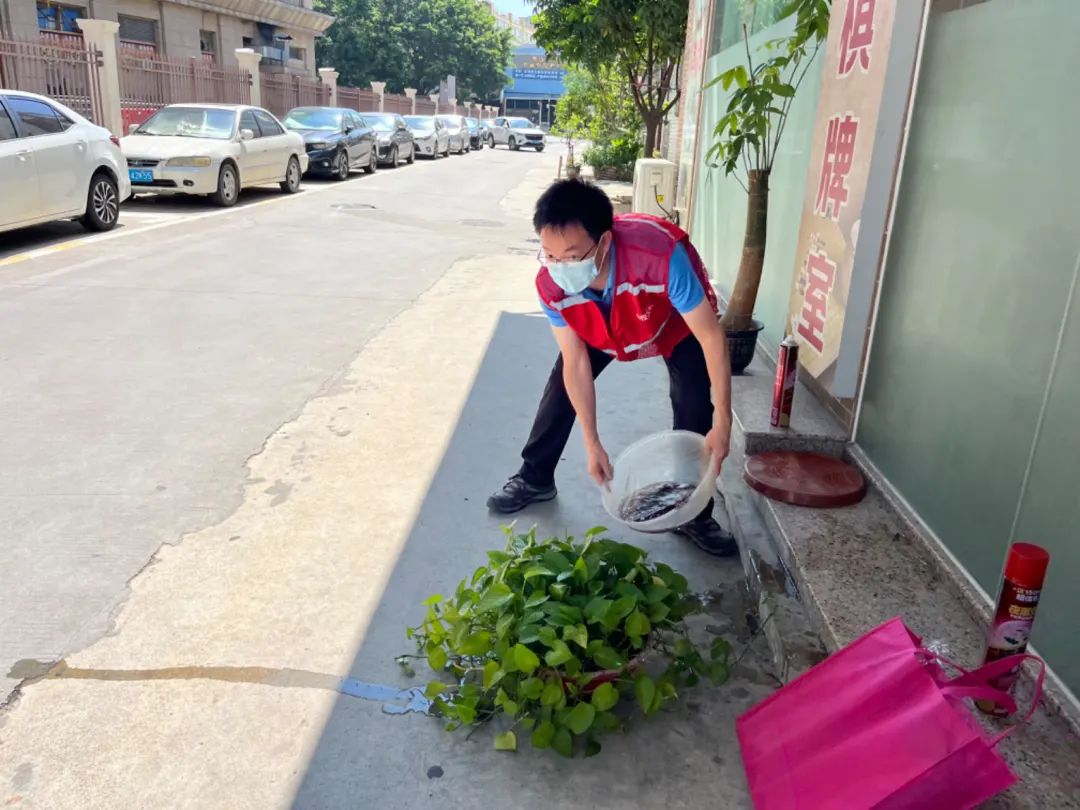 “阿姨,富贵竹最好改为土培的,蚊子喜欢在水里产卵!”入户时,苏展鸿当起耐心的宣传员。有的住户天台堆满杂物,荒废的水池灌满积水,他二话不说,就是撸起袖子清理杂物、疏通堵塞的水池。“连轴转了5天,与队员们100%完成网格内入户任务,网格内积水、烂尾楼房、荒地清理的‘区域包干’。人居环境美了、蚊虫少了,再累也值得!”苏展鸿用一名党员的担当,将初心使命融入守护群众健康的防蚊屏障中。烈日下的每一次俯身清扫,每一次细致消杀,都是一名基层抗疫先锋最生动的注脚。