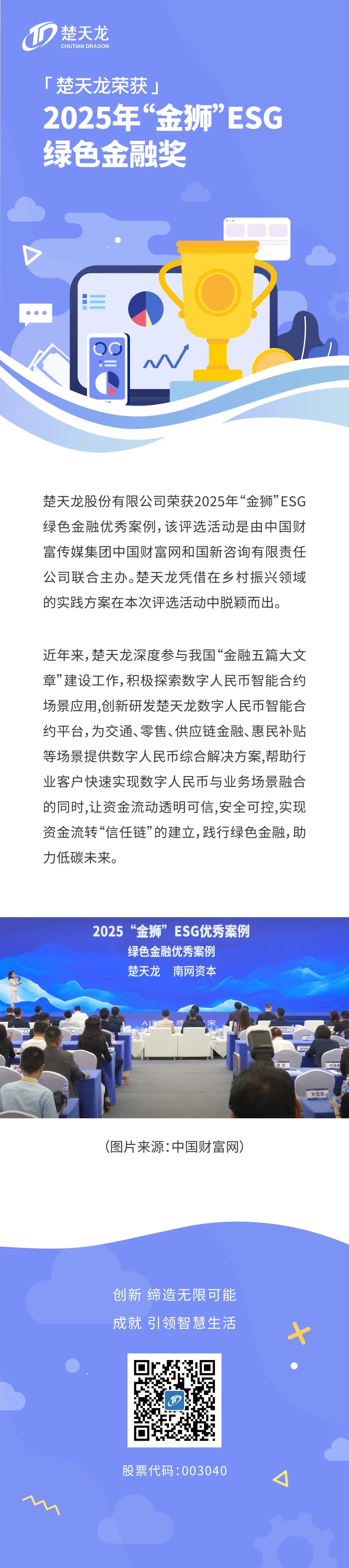 楚天龙荣获2025年“金狮”ESG绿色金融奖