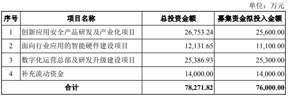 楚天龙(003040.SZ)昨晚披露的2026年度向特定对象发行A股股票预案显示,公司本次向特定对象发行股票募集资金总额不超过76,000.00万元(含本数),扣除发行费用后的募集资金净额将用于下述项目:创新应用安全产品研发及产业化项目、面向行业应用的智能硬件建设项目、数字化运营总部及研发升级建设项目和补充流动资金。