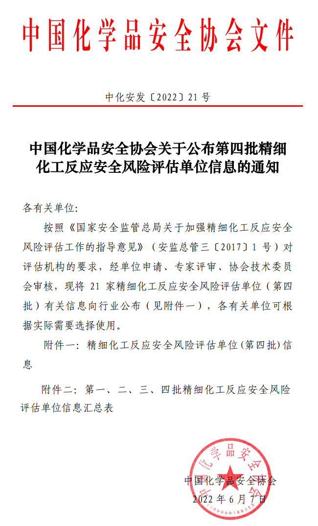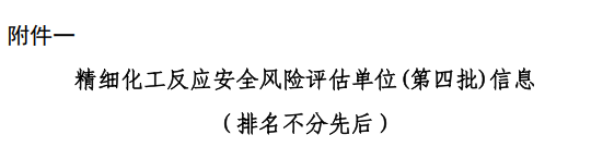 近日,中国化学品安全协会发布关于公布第四批精细化工反应安全风险评估单位信息的通知。