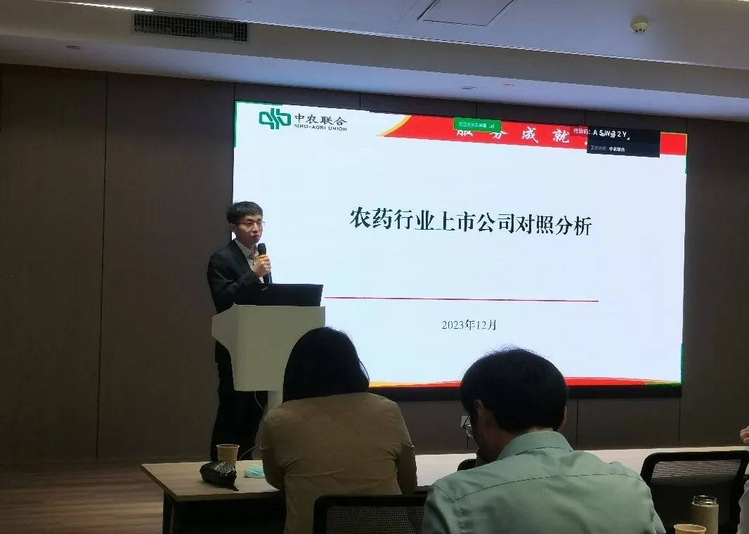 15日上午,公司董事会秘书颜世进以《农药行业上市公司对照分析》为题做分享报告。报告整体回顾了近几年中农联合及同行业上市公司的相关情况,并选取重点可比公司与我司进行各项经营数据的对照分析,总结提出了一系列具有建设性的后续发展建议。