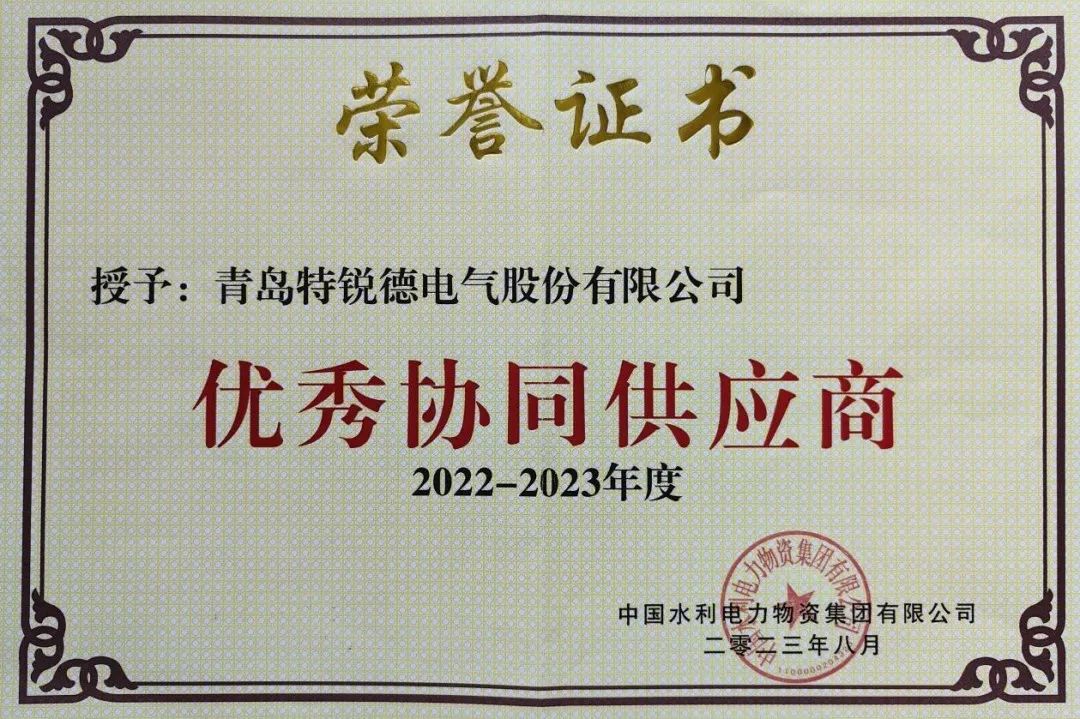 中水物资集团对包括特锐德集团在内的2022年度在品质、交期、服务及合作等方面为做出突出贡献的合作伙伴颁发了“优秀协同供应商”荣誉证书。