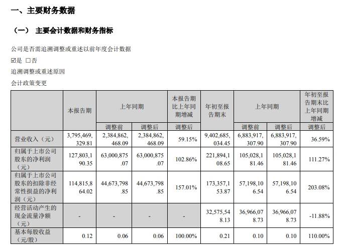 10月27日讯青岛特锐德电气股份有限公司(下文简称特锐德)日前发布2023年第三季度报告,称2023年前三季度实现营收约94.03亿元,同比增加36.59%;归属于上市公司股东的净利润约2.22亿元,同比增加111.27%;基本每股收益0.21元,同比增加110%。