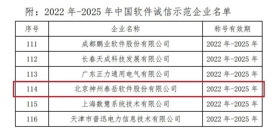 2022年12月20日,中国软件行业协会发布“中国软件诚信示范企业(2022-2025年)名单”,北京神州泰岳软件股份有限公司凭借多年诚实守信、履约践行的突出表现成功入选,荣登榜单!这也是神州泰岳连续12年入选榜单。