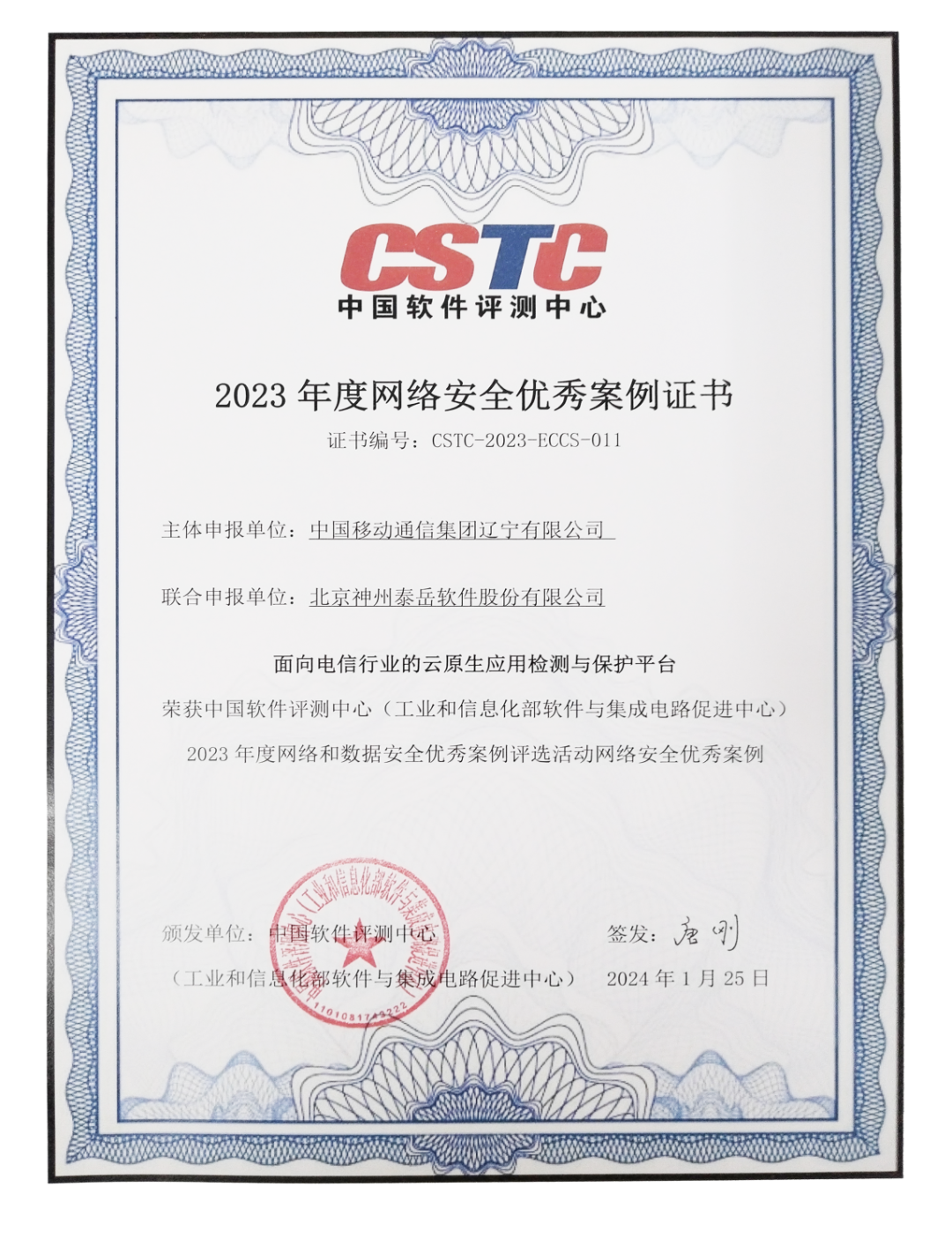 作为信息安全行业先行者,神州泰岳与中国移动辽宁公司针对企业痛点,联合开发了面向电信行业的云原生应用检测与保护平台。该平台保障了电信业务应用的平稳运行,解决了企业的容器安全问题,并因此获评2023年度网络安全优秀案例!
