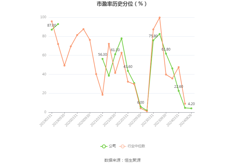 市盈率为负时,不显示当期分位数,会导致折线图中断。