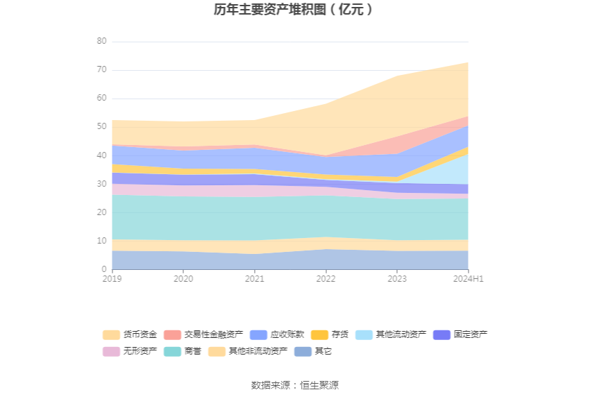 资产重大变化方面,截至2024年上半年末,公司其他流动资产较上年末增加2076.37%,占公司总资产比重上升13.89个百分点;货币资金较上年末减少11.35%,占公司总资产比重下降5.36个百分点;交易性金融资产较上年末减少46.22%,占公司总资产比重下降4.43个百分点;应收账款较上年末减少7.52%,占公司总资产比重下降1.62个百分点。