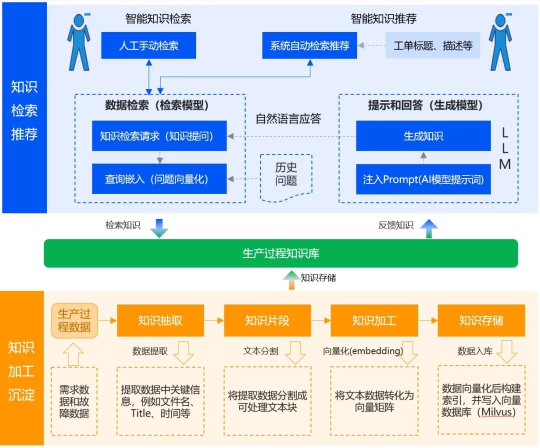 在“AI+知识问答”的实践场景中,神州泰岳采用了 RAG 技术,构建智能化的知识搜索引擎。该引擎能够智能地整合生产过程中分散的文档知识,实现自动化、高效化的知识沉淀与应用,提供上下文关联的智能知识检索,主动推荐相似知识能力,为生产处理过程场景提供数据知识。
