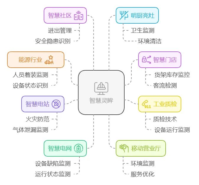 智慧灵眸深度融合了人工智能、计算机视觉、边缘计算技术以及物联网技术,可实时监测作业环境、识别异常行为、分析设备状态,并提供智能告警和数据洞察,助力企业提升安全管理效率,减少事故风险,应用场景覆盖移动营业厅、智慧电站、智慧电网、工业质检等行业。