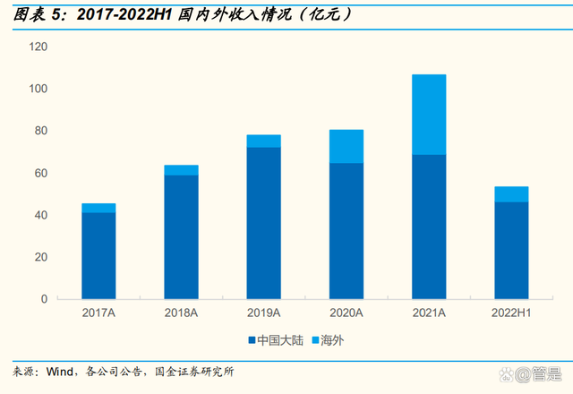 以国内市场为主导,海外收入占比有望逐步提升。公司过去销售的核心市场在国内,2019 年国内市场销售占比 93%。受到 2020 至 2021 年海外抗原检测产品需求量大幅提升的拉动,海外销售占比大幅提升,2021 年公司海外收入占比达到 35%,为公司其他非抗疫产品销售的渠道拓展同样奠定了基础。2022 年上半年抗原产品需求退坡后,公司海外收入占比依然达到 13%,未来海外整体收入规模占比有望随公司拓展持续提升。