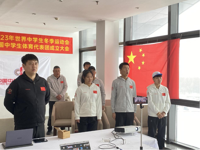2月6日上午,2023年世界中学生冬季运动会(以下简称“世界中冬会”)中国中学生体育代表团正式成立。来自全国6个省、自治区、直辖市21所中学的36名中学生运动员将参加高山滑雪、单板滑雪、越野滑雪、冰壶、花样滑冰等5个大项22个小项的比赛,代表团总数为65人。
