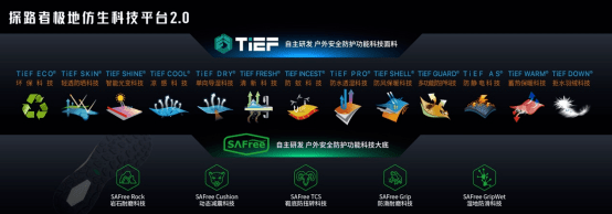 作为较早布局户外运动的品牌,早在2012年探路者就推出了「极地仿生科技平台1.0」版本,其灵感来源于自然生物,包含户外三防等十项各类技术面料科技。