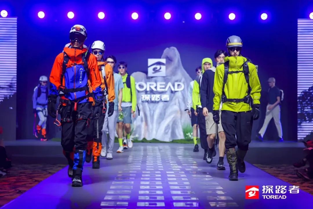 随后,现场进行了探路者2025春夏系列新品走秀,通过变幻的灯光和节奏律动音乐,为大家带来科技与视觉的盛宴,传递穿搭灵感和户外概念。