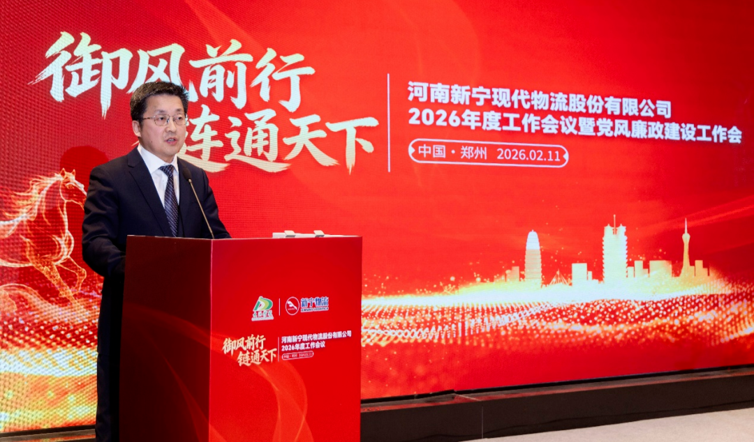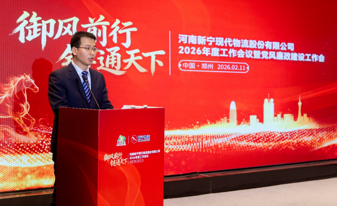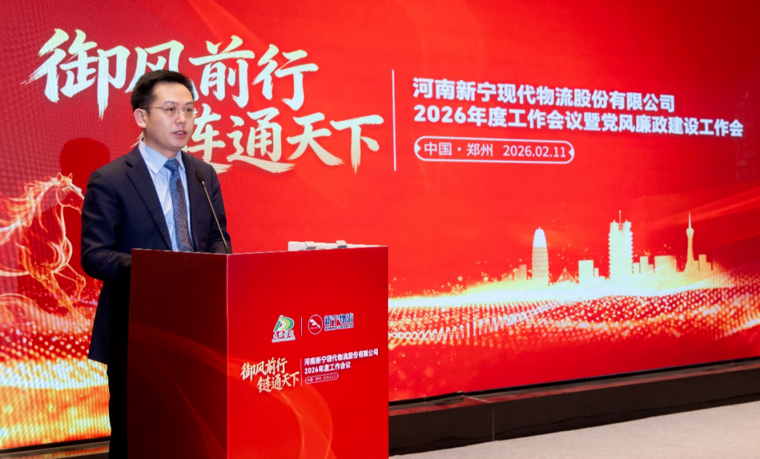 2月11日,河南新宁现代物流股份有限公司在郑州召开2026年度工作会议暨党风廉政建设工作会。会议以习近平新时代中国特色社会主义思想为指导,深入贯彻河南投资集团、大河控股工作会议精神,全面总结2025年融合转型工作成效,系统部署2026年经营发展与党风廉政建设重点任务。大河控股总经理、党委副书记王涛,物流运营部负责人张家铭莅临指导,公司领导班子成员、在郑全体干部职工及受表彰先进代表参加会议。