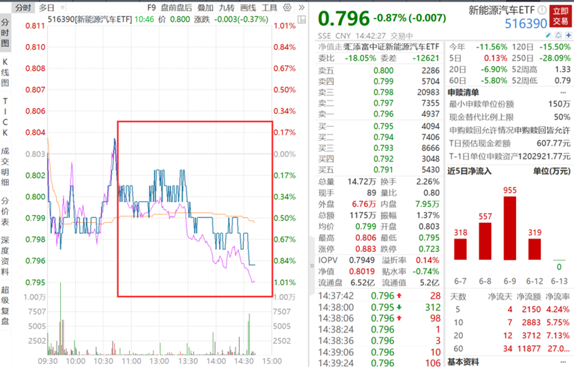 主流ETF方面,截至14:42,新能源汽车ETF(516390)跌1%,午后跌幅加深区间,溢价持续走阔,反映买盘或加速布局!
