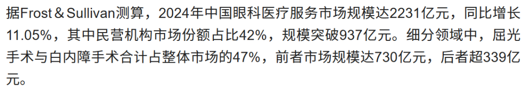 从行业地位来看,爱尔眼科绝非普通玩家。根据Frost&Sullivan数据,2024年民营机构已占据中国眼科医疗服务市场的42%,而爱尔眼科是其中绝对的龙头。其市值波动、合规状况和发展模式,对整个社会办医领域具有风向标意义。