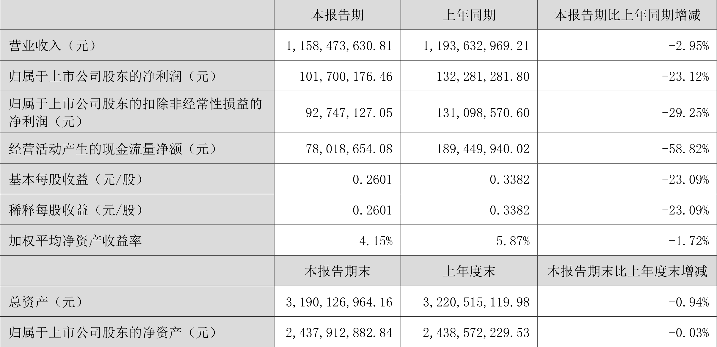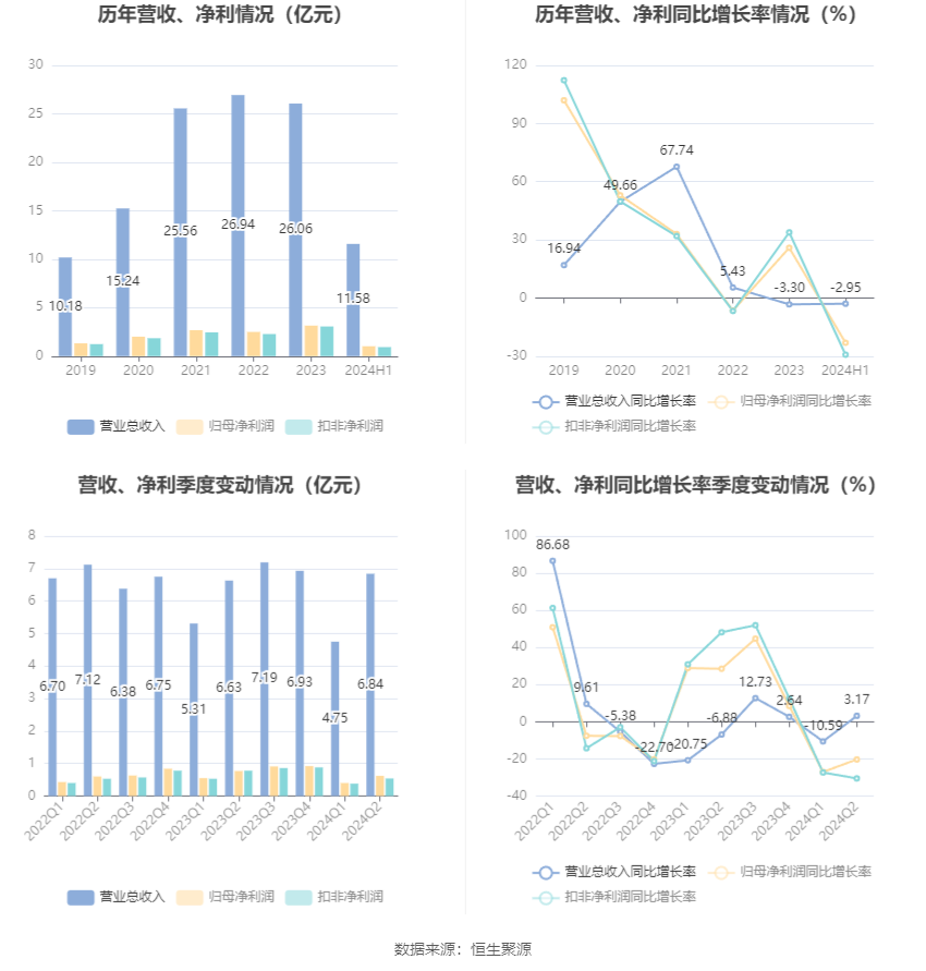 根据半年报,公司第二季度实现营业总收入6.84亿元,同比增长3.17%,环比增长44.14%;归母净利润6157.66万元,同比下降20.33%,环比增长53.47%;扣非净利润5448.06万元,同比下降30.53%,环比增长42.37%。