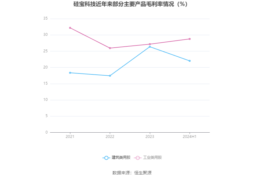 分产品看,建筑类用胶、工业类用胶2024年上半年毛利率分别为22.02%、28.77%。