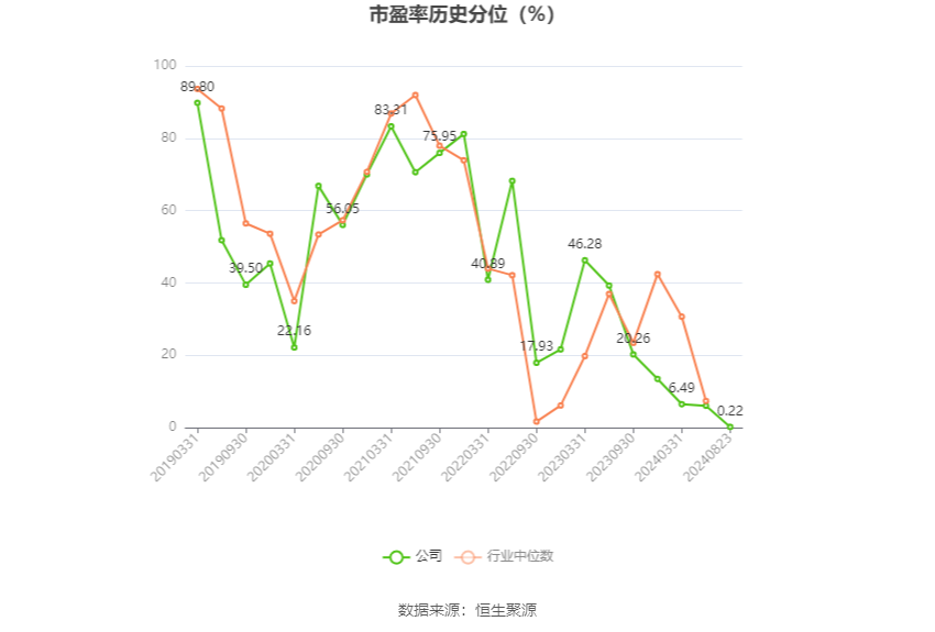 市盈率为负时,不显示当期分位数,会导致折线图中断。