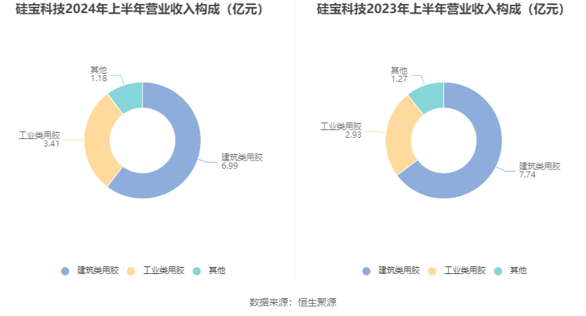 分产品来看,2024年上半年公司主营业务中,建筑类用胶收入6.99亿元,同比下降9.77%,占营业收入的60.30%;工业类用胶收入3.41亿元,同比增长16.50%,占营业收入的29.44%。