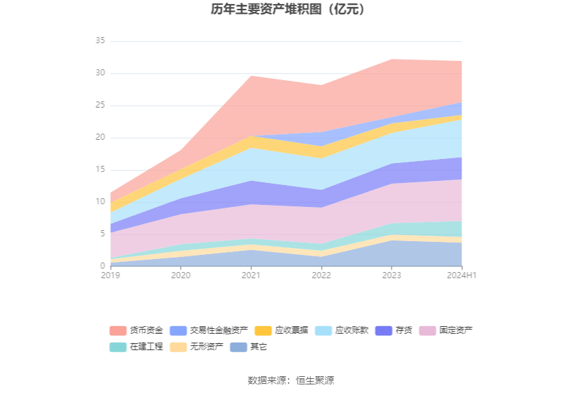 资产重大变化方面,截至2024年上半年末,公司货币资金较上年末减少29.11%,占公司总资产比重下降7.93个百分点;应收账款较上年末增加23.58%,占公司总资产比重上升3.64个百分点;交易性金融资产较上年末增加100.10%,占公司总资产比重上升3.17个百分点;应收票据较上年末减少51.98%,占公司总资产比重下降2.39个百分点。