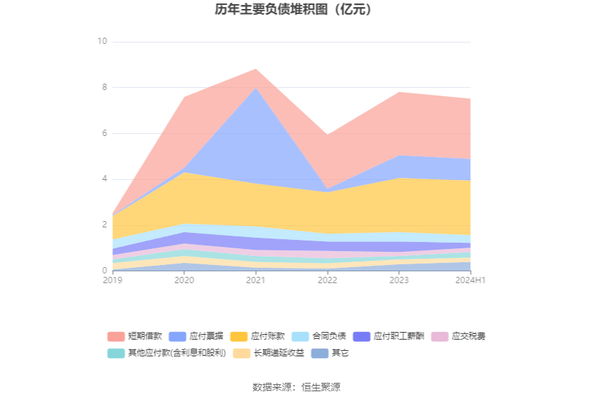 负债重大变化方面,截至2024年上半年末,公司应付职工薪酬较上年末减少54.60%,占公司总资产比重下降0.77个百分点;短期借款较上年末减少5.12%,占公司总资产比重下降0.36个百分点;长期借款较上年末增加58.09%,占公司总资产比重上升0.32个百分点;其他应付款(含利息和股利)较上年末增加60.71%,占公司总资产比重上升0.30个百分点。