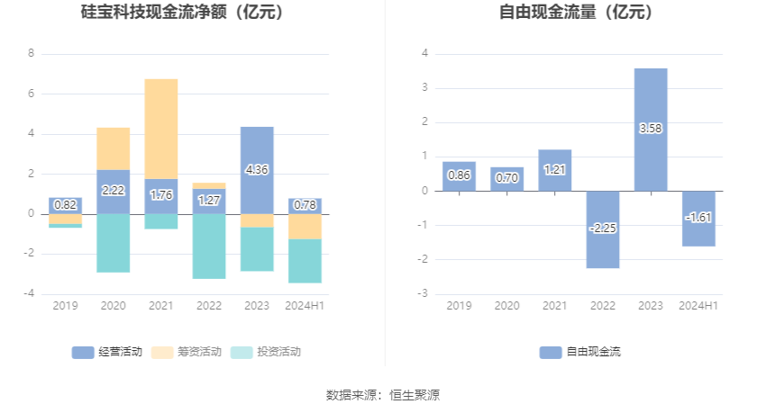 进一步统计发现,2024年上半年公司自由现金流为-1.61亿元,上年同期为1.51亿元。