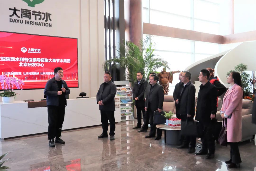 2月15日陕西省水利厅调研考察团一行以及合阳县政府考察团一行先后到大禹节水集团天津总部对公司展厅、实验室、生产车间等参观考察。华中总公司总裁顾正明介绍了合阳县的项目情况、项目合作展望和意见建议;慧图集团宁夏公司总经理尹天利对水利信息化配合现代化灌区建设、高标准农田未来通过信息化的手段提高运维效率的情况进行了介绍,并从业务、技术创新、服务等方面介绍了慧图科技的公司的情况。