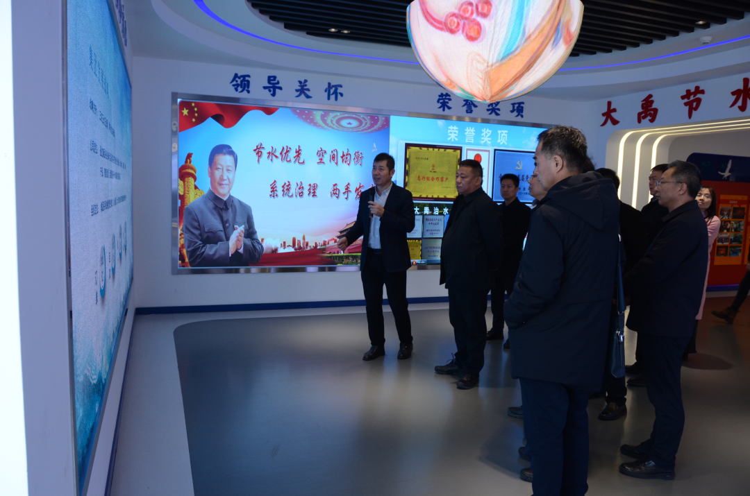 参加考察的有陕西省水利厅农水处处长郑坤、财务审计处处长王小莉、四级调研员陈艳,陕西省泾惠渠灌溉中心主任赵鸿君、交口抽渭灌溉中心主任刘勇、石头河水库灌溉中心主任王洁,渭南市东雷抽黄工程管理中心主任李焕新,合阳县县委副书记、县长赵超,县委常委、宣传部长李小鸽,副县长井赵斌等领导;陪同考察的有大禹节水集团总裁谢永生,首席科学家、研究院院长高占义,集团高级副总裁、农水集团总裁崔静,集团副总裁、董事会秘书陈静,集团副总裁、总规划师高宏,集团副总裁、农水集团华中总公司董事长李永杰,设计集团总裁严文学,慧图集团常务副总裁廖华轩,农水集团华中总公司总裁顾正明等。