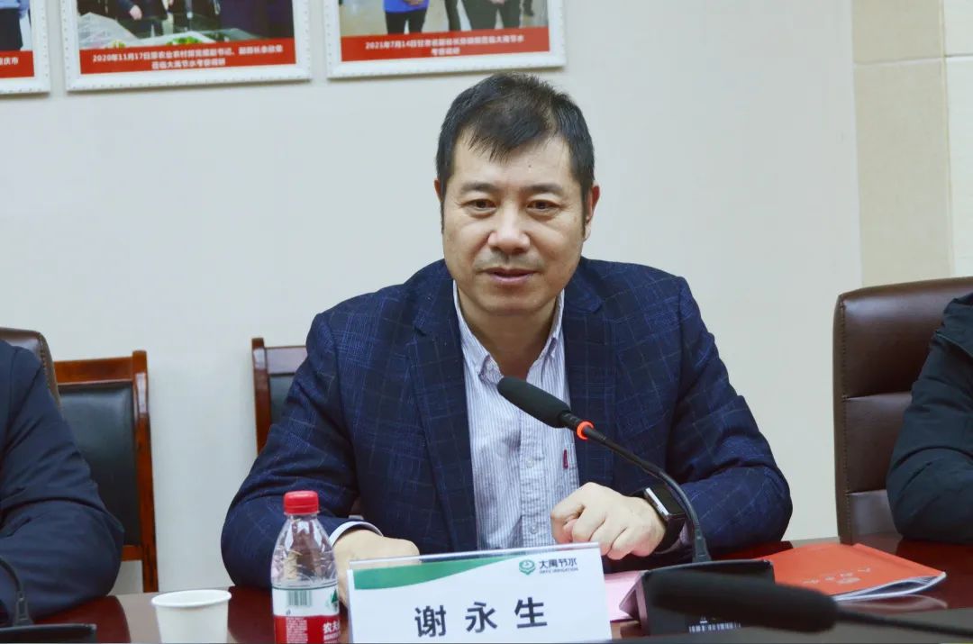 总裁谢永生表示感谢合阳县领导对此次合作方向的认可,围绕合阳县水资源,以战略合作协议为起点两手发力,共同探讨把整个合阳的水利发展走向一个新的台阶,以黄河流域生态保护和高质量发展为主线,打造“投建管运服一体化”现代农业产业体系为目标,利用公司在“三农”领域投融资、规划设计、工程施工、智慧运营、运维管理服务等全产业链优势,在合阳县灌区建设及社会化运营、高标准农田建设、城乡供水一体化、城市中水回收利用、黄河流域水环境综合治理、全县水资源优化调度管理等领域进行深度合作,为陕西省乃至全国打造农业供水物业化管理的“合阳模式”,助力合阳县乡村振兴和高质量发展,使合阳成为实施乡村振兴战略的排头兵和主力军。