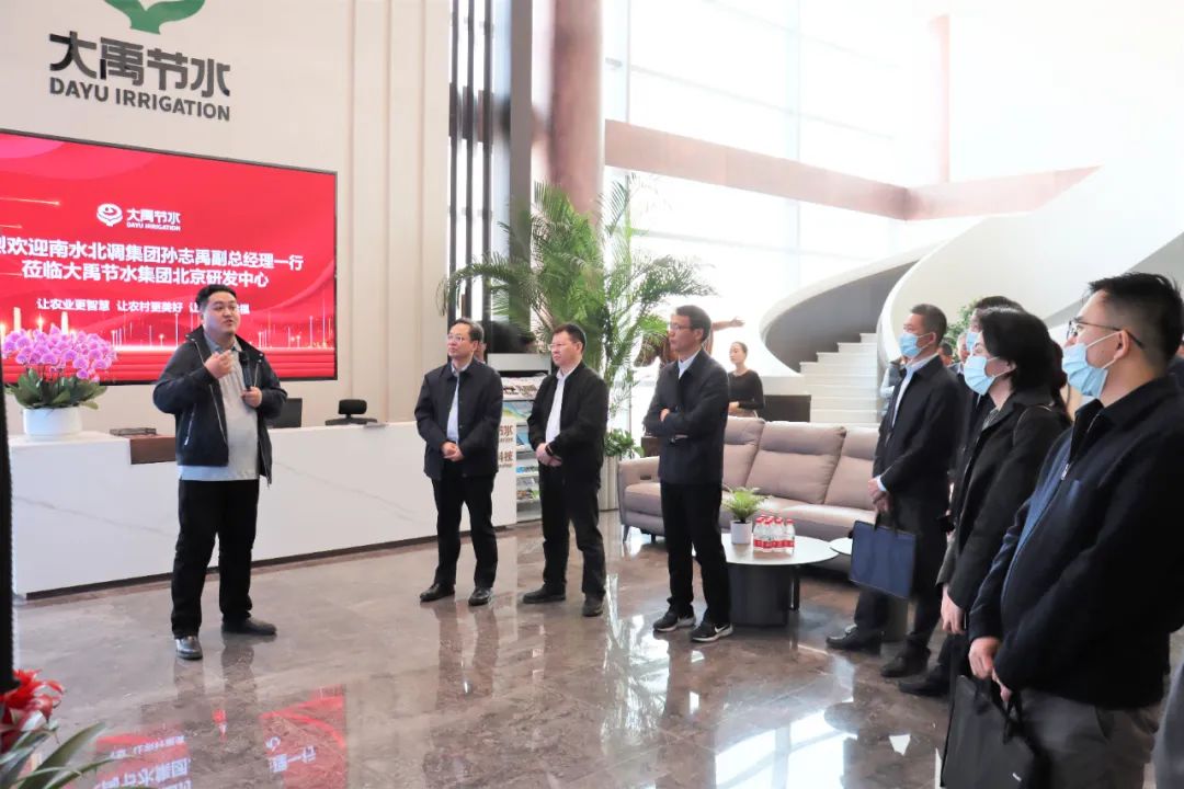 南水北调集团副总经理孙志禹表示此次调研的目的是学习大禹节水在水利行业积累二十余年的先进经验,对大禹节水聚焦聚力深耕“三农领域”,持续践行“让农业更智慧、让农村更美好、让农民更幸福”的使命担当表示赞许,对于大禹节水形成的集项目规划策划、研发设计、投资融资、装备制造、工程建设、运维管理及智慧化服务为一体的全生命周期专业化系统解决方案表示肯定,希望在高效节水灌溉、农村生活污水治理、流域综合治理等方面展开深入合作。