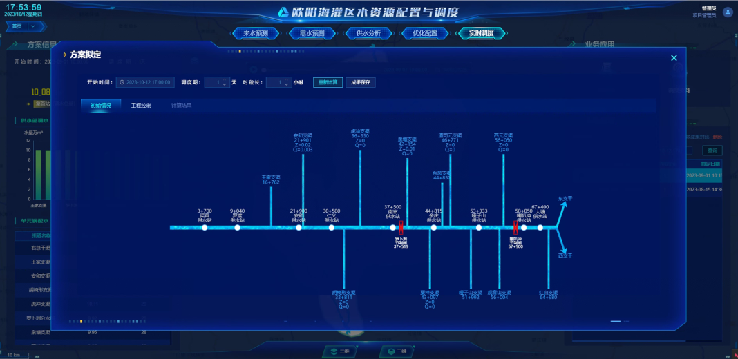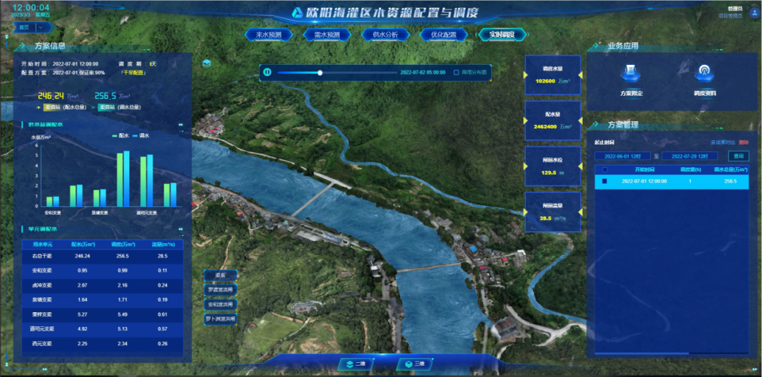 推进数字灌区建设,水资源配置与调度是支撑灌区水资源管理业务的重要一环。慧图科技灌区水资源配置调度模型集成“来水-需水-配水-调水”等多个子模型,汇集中长期来水预报和短期来水预测模型、作物灌溉需水模型、工业生态需水模型、渠道优化配水模型、粒子群优化算法及按需供水调度模型等,实现流域系统“来水-需水-配水-调水”的全过程模拟。