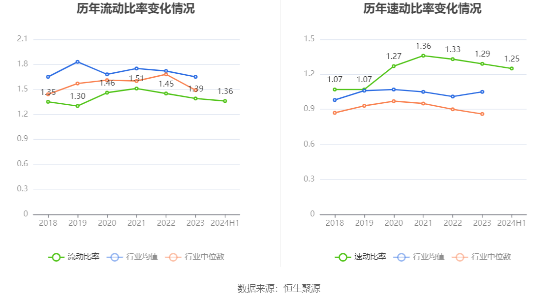 2024年上半年,公司流动比率为1.36,速动比率为1.25。