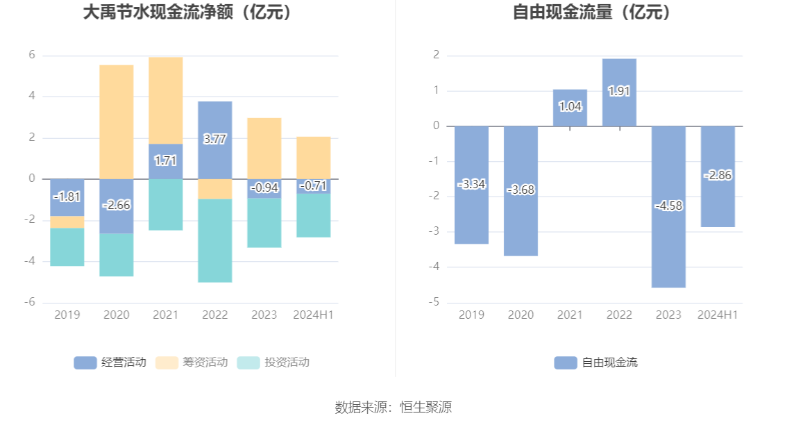 进一步统计发现,2024年上半年公司自由现金流为-2.86亿元,上年同期为-5.90亿元。