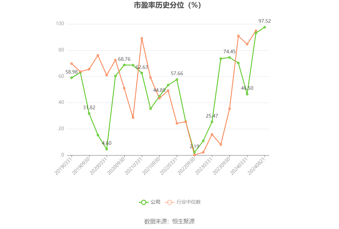 市盈率为负时,不显示当期分位数,会导致折线图中断。