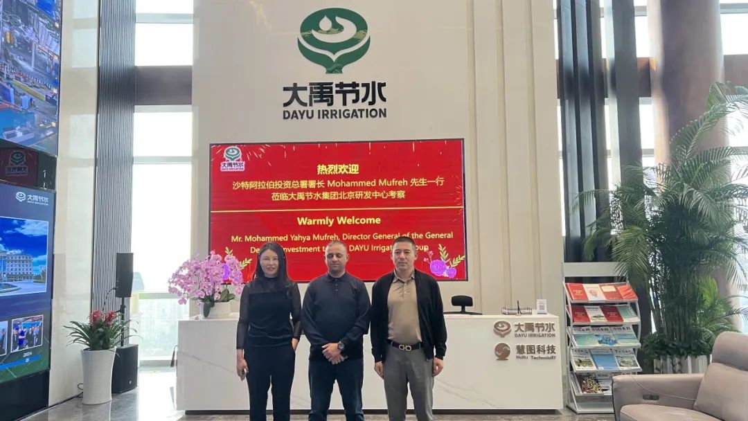 Mohammed Yahya Mufreh 先生对大禹节水取得的成绩给予高度评价,并对集团的全产业链优势和一体化节水解决方案给予高度关注。他指出,沙特正积极应对水资源挑战,在节水灌溉、水资源管理等领域需求迫切,大禹节水的技术和方案与沙特的发展需求高度契合,期待双方在相关领域展开深入合作,共同探索创新合作模式,实现互利共赢。