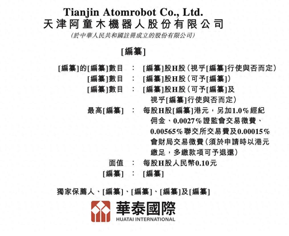 1月28日,天津阿童木机器人股份有限公司(以下简称“阿童木机器人”)在港交所递交招股书,华泰国际为其独家保荐人。