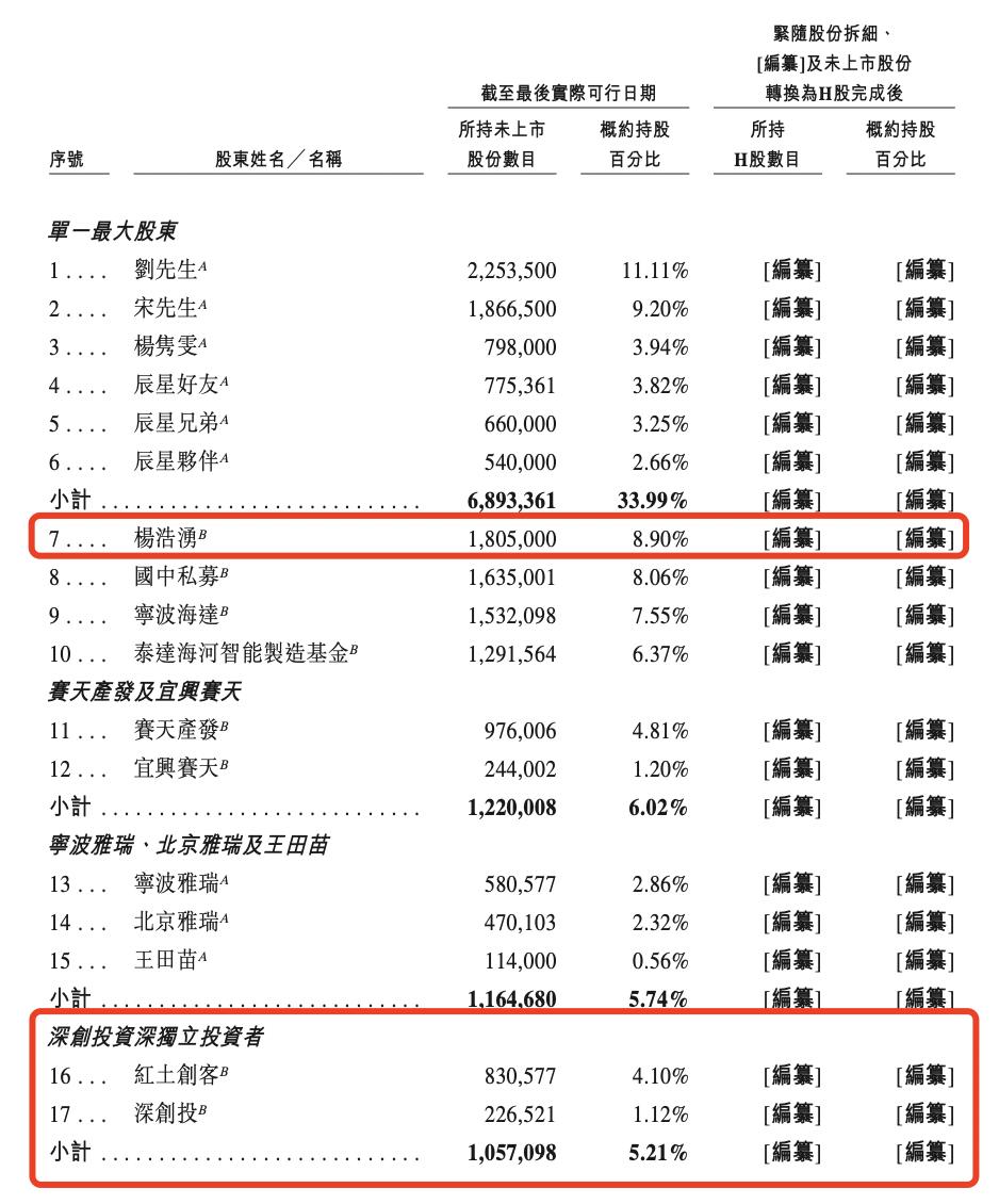 IPO前,瓜子二手车创始人杨浩涌、深创投、联想、新松机器人等位列股东。其中,杨浩涌持股8.9%,深创投合计持股5.21%,联想基金持股4.99%,新松机器人旗下新松投资持股2.37%。