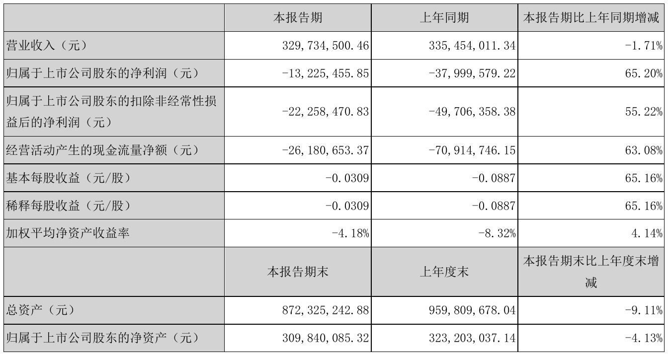 挖贝网8月29日,华星创业(300025)近日发布2021年半年度报告,报告期内营业收入329,734,500.46元,同比减少1.71%;亏损13,225,455.85元,同比亏损减少65.20%。