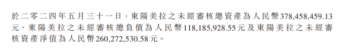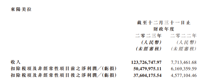 2023年及2024年1-5月,东阳美拉分别实现净利润3760.42万元、162.73万元。同时,2023年末及2024年5月末,该公司的净资产分别为2.59亿元、2.6亿元。