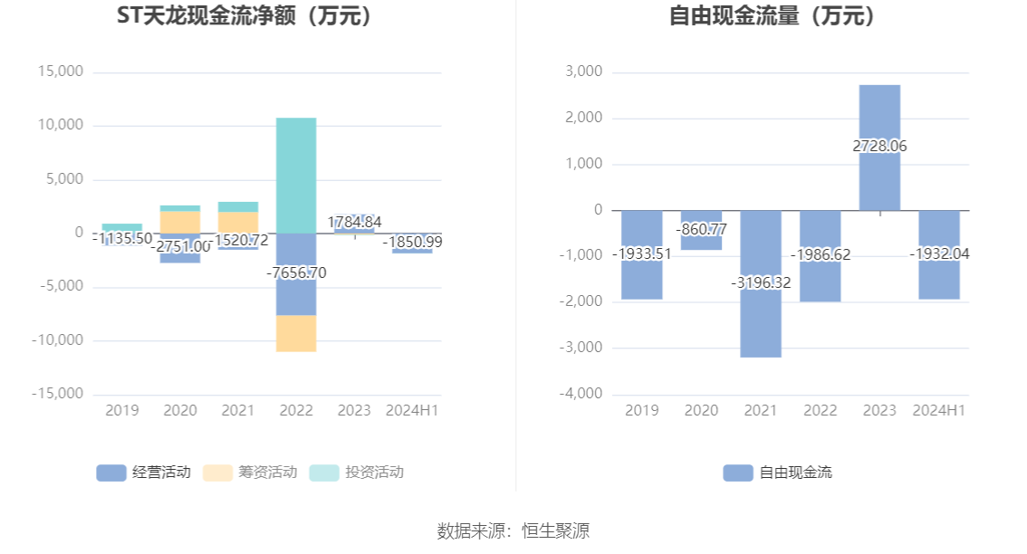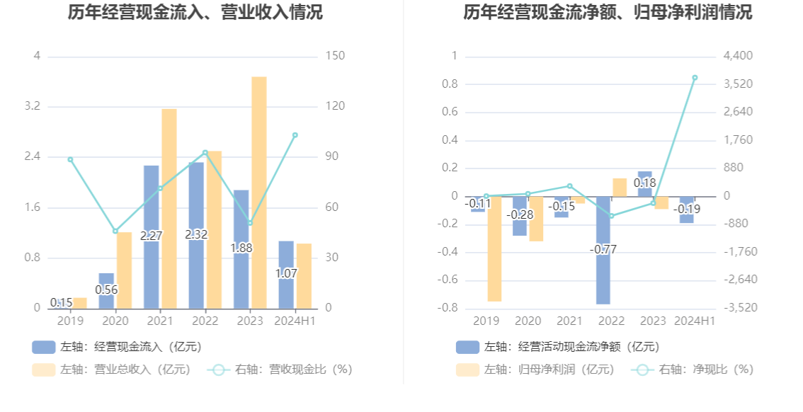 进一步统计发现,2024年上半年公司自由现金流为-1932.04万元,上年同期为173.20万元。